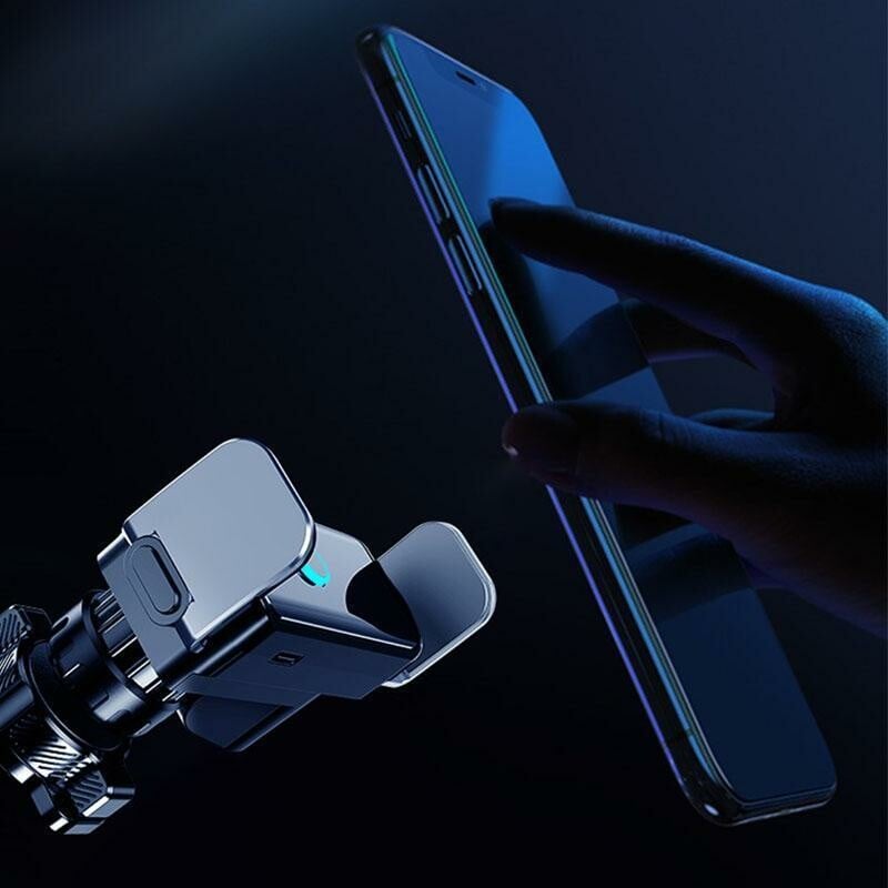 The AUTOMATIC RETRACTABLE phone clamp will hold the phone securely and prevents it from falling off while driving, even on bumpy roads. Easy to insert and remove your phone with one hand.